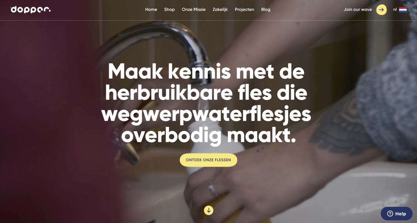 Ik noem de hoofdafbeelding bewust geen “Hero image”. Vaak wordt een “Hero image” gezien als een (achtergrond) afbeelding of video die het volledige beeld vult wanneer je een pagina opent. Met hoofdafbeelding bedoel ik een visuele blikvanger die ondersteunend is aan jouw propositie, ongeacht of deze een deel of volledig het beeld vult (boven de vouw). Bijvoorbeeld een smartphone met daarop een app wanneer je software verkoopt. Of een mooie foto van een tastbaar product.