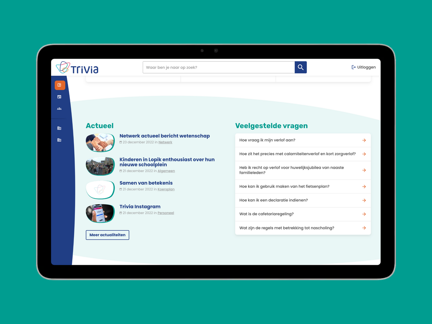 Triviascholen wilde een school intranet. De scholengroep wilde een centrale plek die iedereen herkent en waar medewerkers snel hun weg vinden. Dit intranet laten maken was belangrijk omdat essentiële documenten naadloos in het systeem moesten zitten. Om alle medewerkers te bereiken en de betrokkenheid te vergroten, was een intranet app op de mobiele telefoon nodig. Via deze app kon de school berichten sturen (push-notificaties), zodat alle medewerkers direct bereikt worden en er een hoog engagement is.